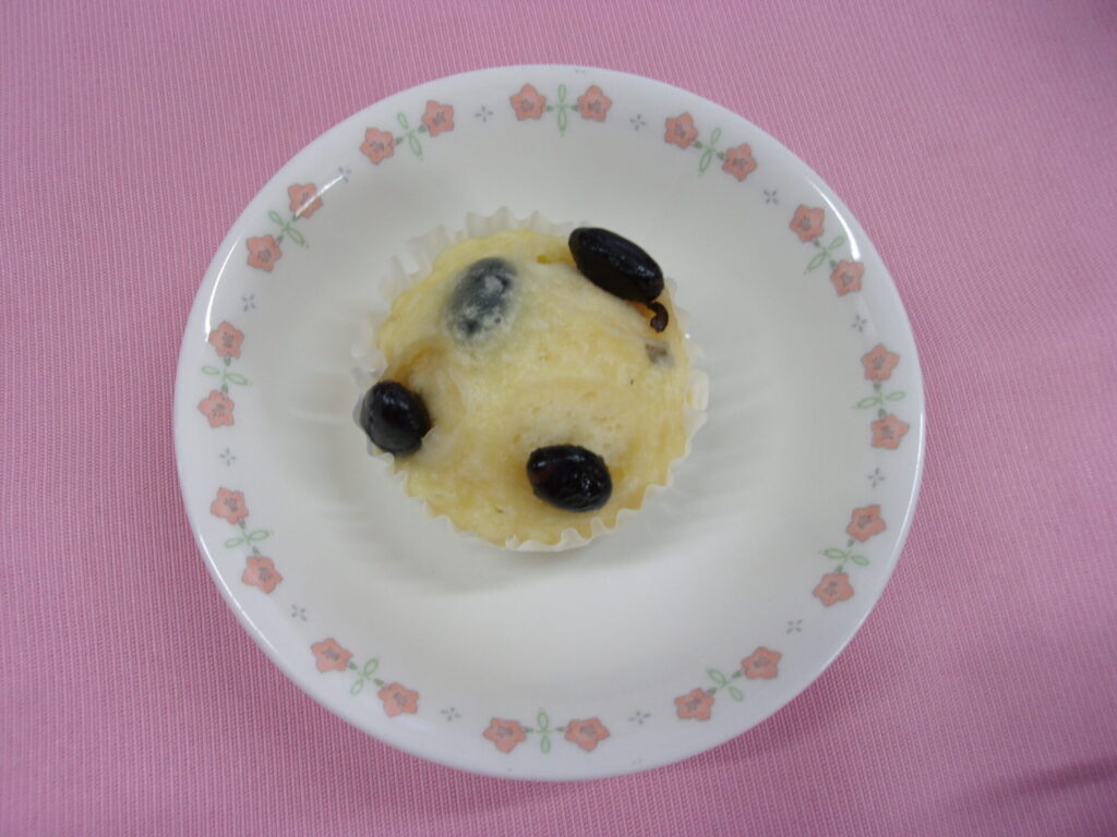 ◆黒豆蒸しパン 小麦粉、ベーキングパウダー、卵、砂糖、牛乳、油、うずら豆