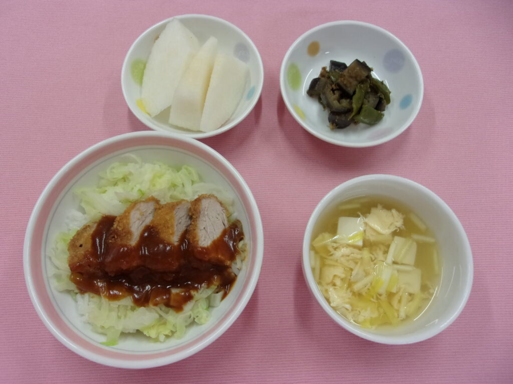 豚肉、塩、小麦粉、卵、パン粉、油、デミグラスソース、酒、ソース、ケチャップ、砂糖、がらスープ、キャベツ、グリンピース
