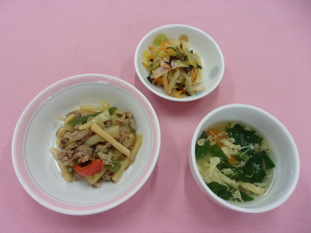 ハム、春雨、人参、キャベツ、きゅうり、きくらげ、砂糖、しょうゆ、酢、ごま油