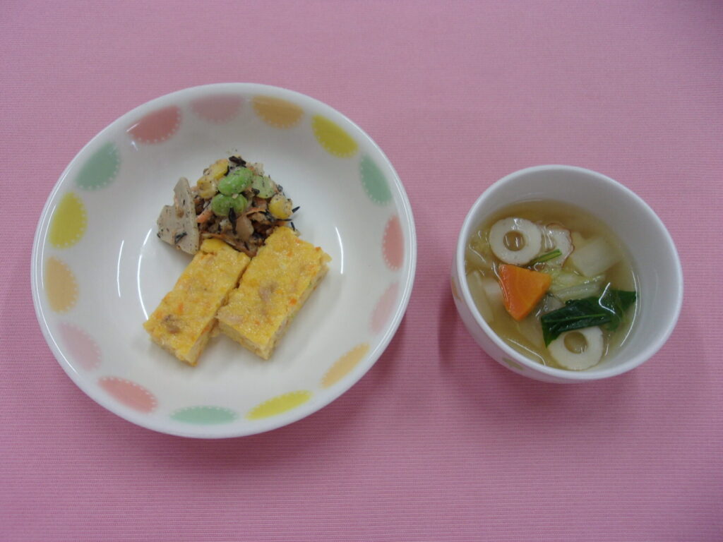 ひじきのサラダに園で採れた“ラディッシュ“を入れています。