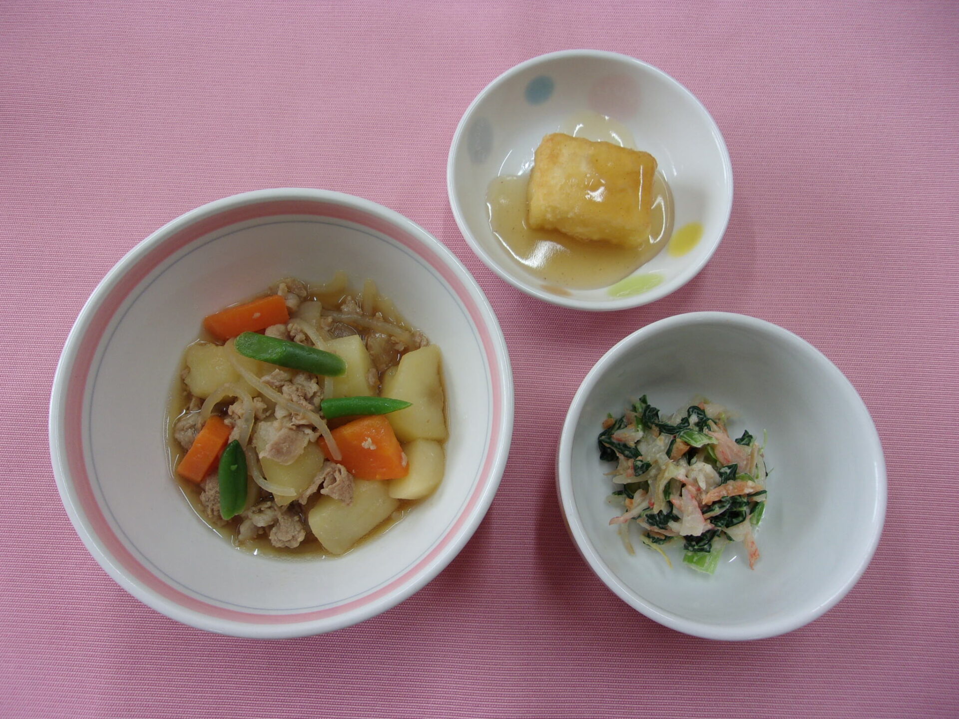 豚肉、うどん、白菜、玉ねぎ、人参、ねぎ、しょうゆ、みりん、片栗粉、塩